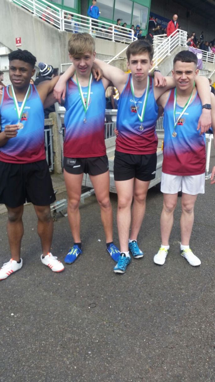 Photo from Mary McKenna April 17, 2018 by CelticDCH Athletic Club, posted in Uncategorized Winning 4x300m relay team from at Declans at West Leinster schools today in Santry. Well done to club members Ian, Sean and Sam!!. Share this: Share on Facebook (Opens in new window) Facebook Share on X (Opens in new window) X Share on LinkedIn (Opens in new window) LinkedIn More Share on Reddit (Opens in new window) Reddit Like Loading... Related