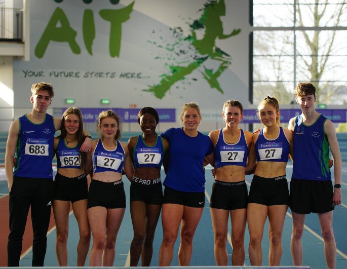 In Athlone today our women’s team came out top of the Indoor Inter Club National League for the 4th year in a row. Catherine Mc Manus got us off to a good start with a fine 2nd place in the 200m . Emily Corcoran finished 2nd in the high jump and Jodie McCann rocked up another 2nd place in the 1500m. Catherine finished 1st in the 400m. Clare Murphy made her competition debut in the triple jump.