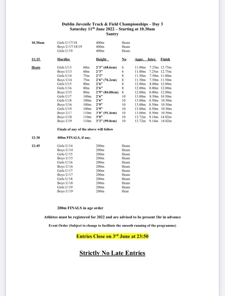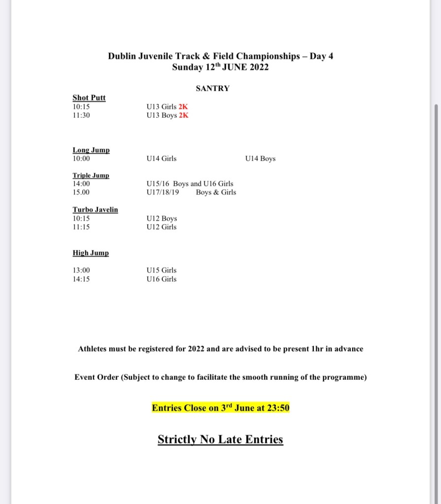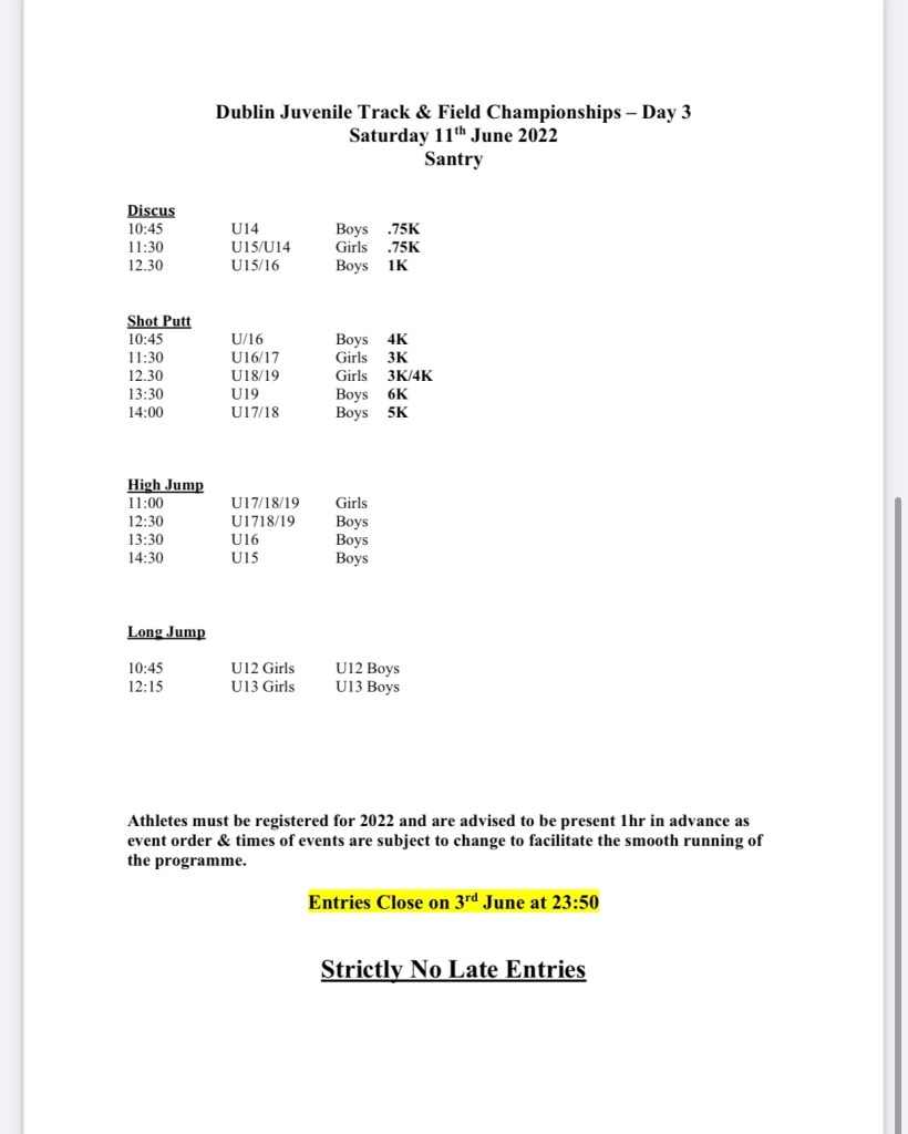 Dublin Juveniles Day 2,3&4 timetables June 7, 2022 by CelticDCH Athletic Club, posted in Uncategorized Share this: Click to share on Facebook (Opens in new window) Facebook Click to share on X (Opens in new window) X Click to share on LinkedIn (Opens in new window) LinkedIn More Click to share on Pocket (Opens in new window) Pocket Click to share on Reddit (Opens in new window) Reddit Like Loading... Related