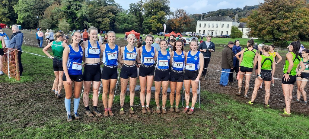 Claire imposed herself in a strong position from the start in 4th place with Aislinn and Sinead just outside the top ten. Aoife Ni and Aoife C were 15 places back from this, while Aoife D and Sarah worked hard in mid race positions. With the exception of Sinead who gained a few places, these positions were more or less maintained on the first long lap. The final lap saw Claire maintain her 4th position with Sinead improving all the time and Aislinn fighting off those who attempted to pass. Aoife Ni also maintained her position and Aoife Corr passed a few in an attempt to get closer to her club mate. Aoife D and Sarah continued to work hard through the clinging mud. On the last lap Claire maintained her 4th position and in fact gained some ground, Sinead having a super race gained more places to finish 5th, Aislinn held on to 11th place under pressure while Ellen took a few more places to close in 17th. Aoife Ni 26th, Aoife C 29th, Aoife D 47th and Sarah 69th completed our finishers. Claire, Sinead Aislinn and Ellen completed our scoring four, while all but Ellen also scored on the winning Dublin Team.