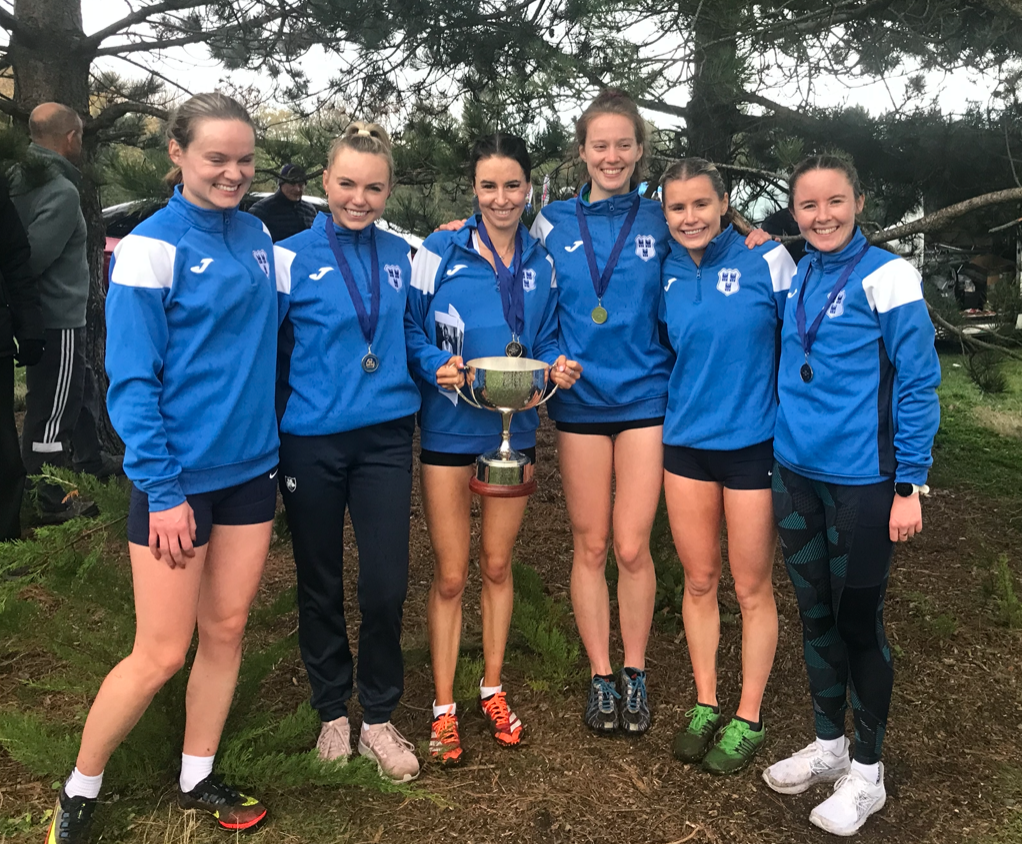 On Sunday at the Dublin Senior XC championships in City West Dublin, the ladies in blue retained the Jim McNamara Team Cup with Faye (3rd), Jodie (4th), Alison (6th), Cliona (7th), Eimear (19th) and Aoife (24th) – a magnificent team performance with great packing up front! DCH with 20 points were convincing team winners from DSD in 2nd with 37 points and Raheny Shamrocks 3rd with 42 points – our 4th team senior team title of the season! All these performances augurs well for the National Seniors!