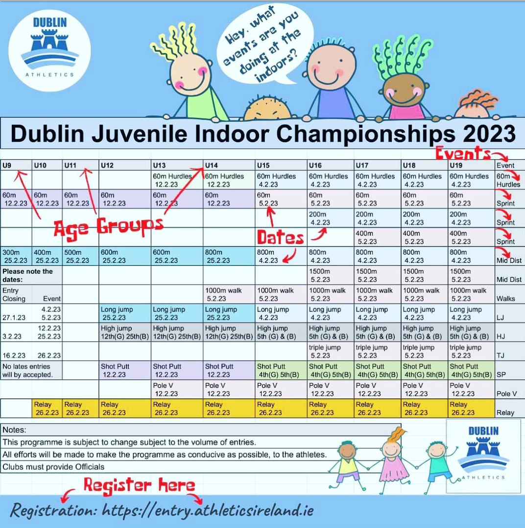 The online entry is NOW OPEN for the Dublin Juvenile Indoor Championships. The competition number is 711.