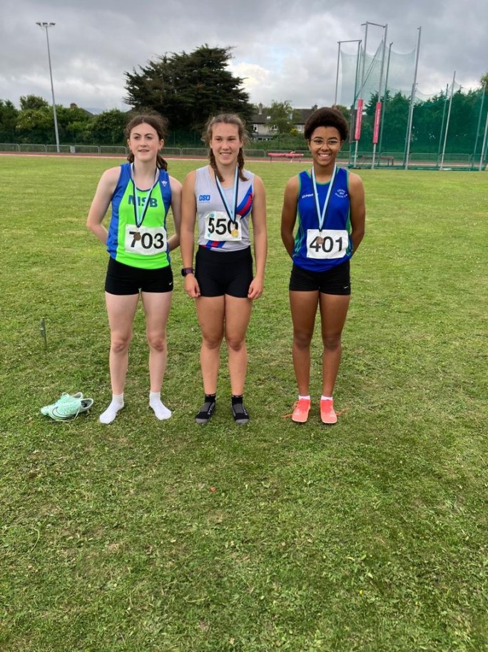 Martha was a fine 4th today in the under 15 100m final and was even better in the hurdles finishing in 2nd place in her final. With relay medals from Wednesday and Friday she also had a busy week. Alice also was a busy girl adding a 200m bronze today to her relay medals on Wednesday and Friday.