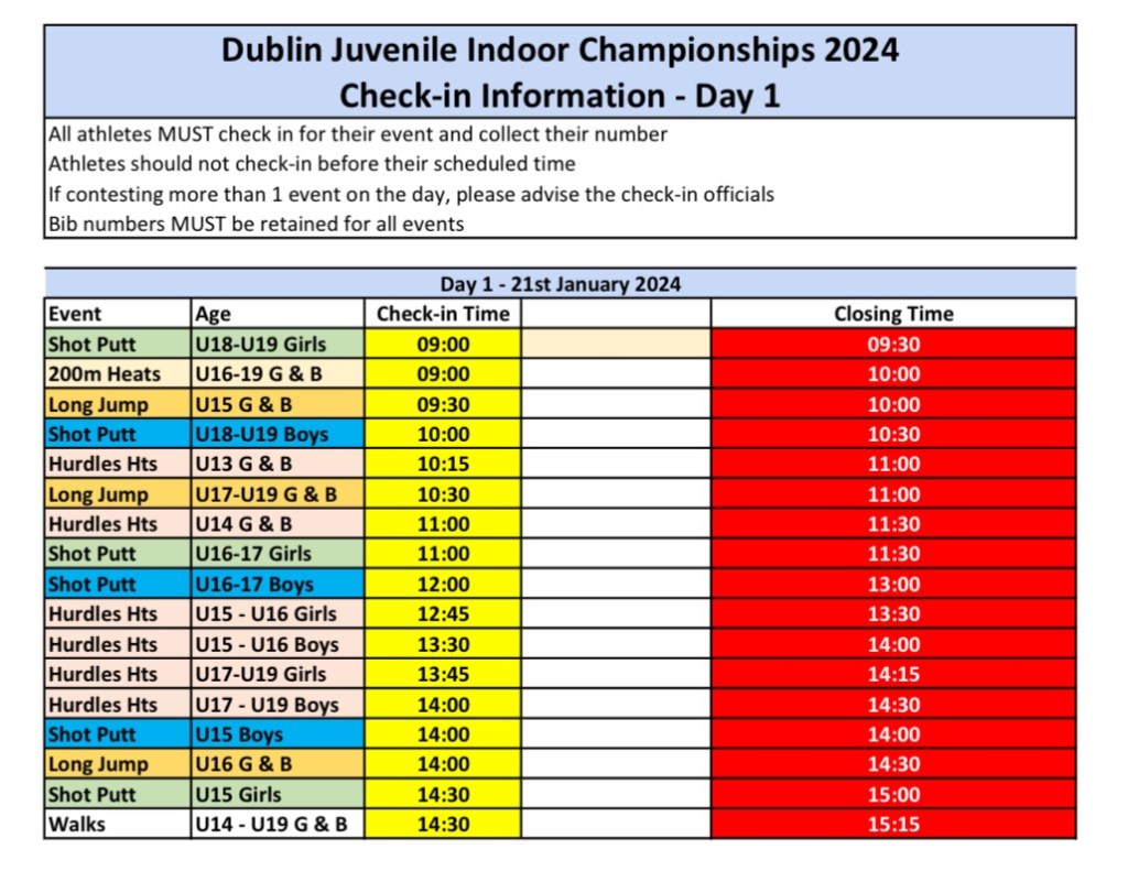 All details and closing dates are on the Dublin athletics website. Please note no later entries will be accepted. Monday 15th is the closing date for day 1.