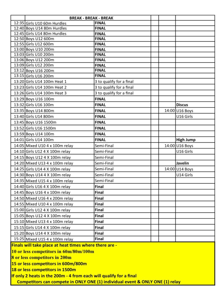 Dublin Community Games Timetable Sunday 2nd June June 1, 2024 by CelticDCH Athletic Club, posted in Uncategorized All athletes please arrive minimum 1 hour before track events start time and 1.5 hours before relay start time. Share this: Click to share on Facebook (Opens in new window) Facebook Click to share on X (Opens in new window) X Click to share on LinkedIn (Opens in new window) LinkedIn More Click to share on Pocket (Opens in new window) Pocket Click to share on Reddit (Opens in new window) Reddit Like Loading... Related