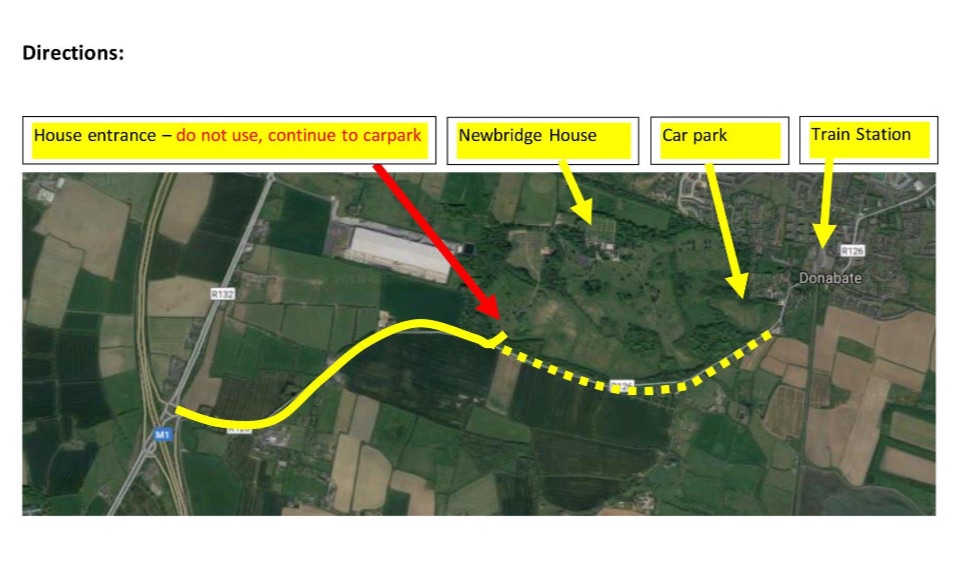 Please ๐๐ข ๐ก๐ข๐ง park in the main carpark of Newbridge House; please proceed to the carpark entrance on Hearse Road (see map for directions).