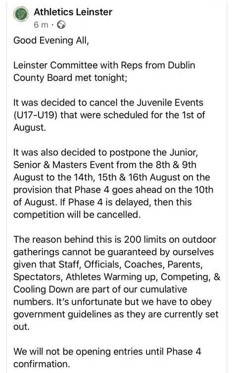 Sat 17 th July meet at 9.30 in Santry park for warm up. Sprints group plus others 2008 and older.