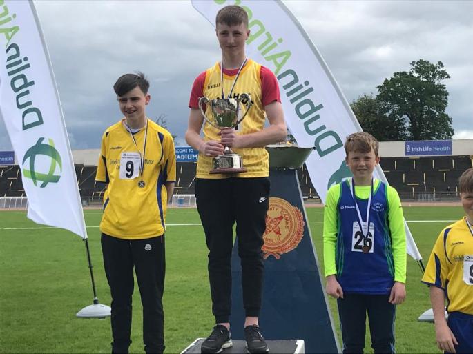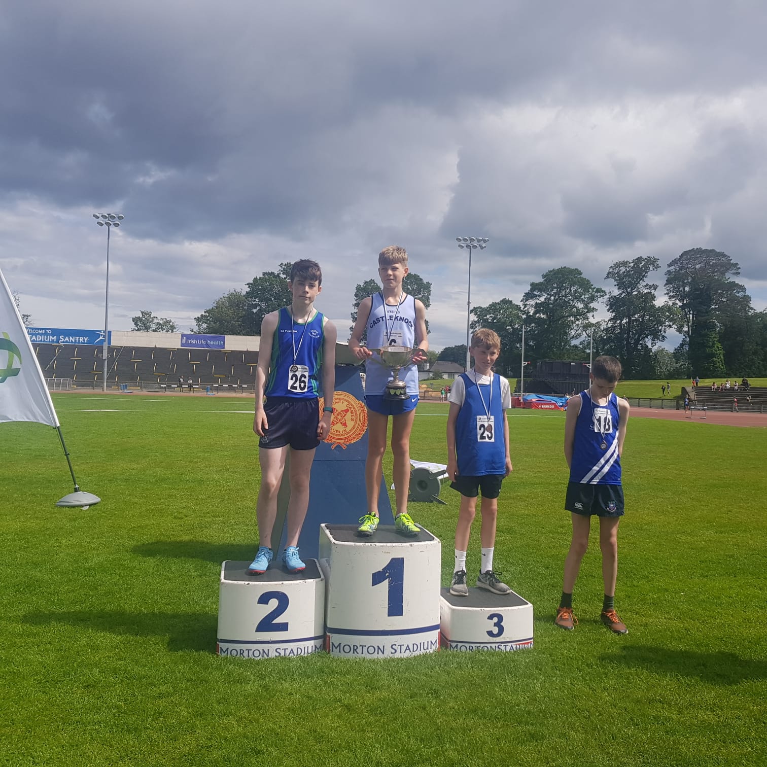 Oisin on the podium after his 800m.in Santry today