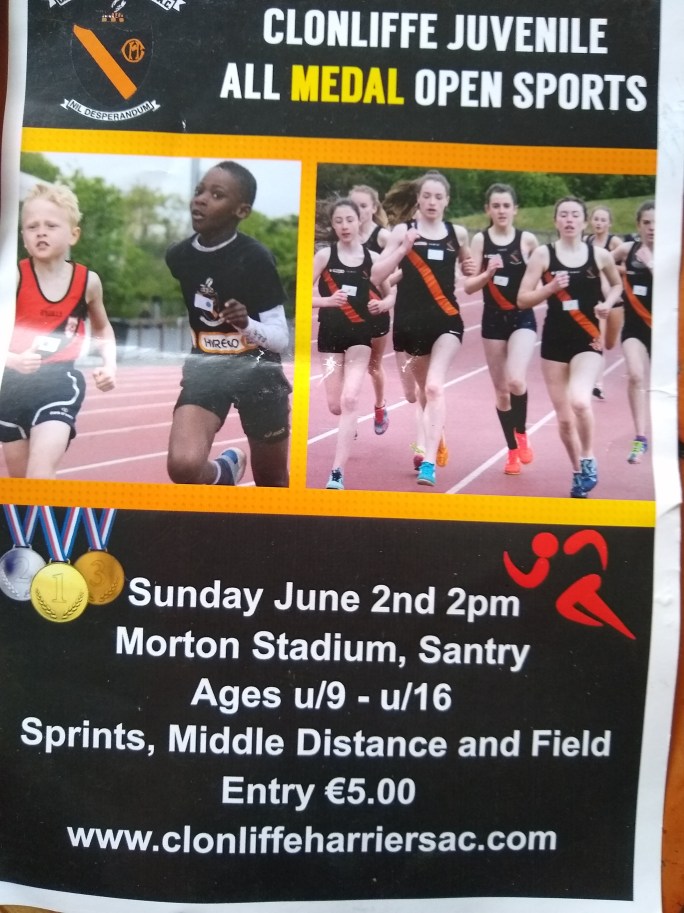 Sat 1st June Irish schools championships in in Tullamore. Best of luck to Emily in the senior high jump at 9am and Sean in inter 1500m at 4.30. timetable for the day and link to Livestream is on Athletics Ireland website.