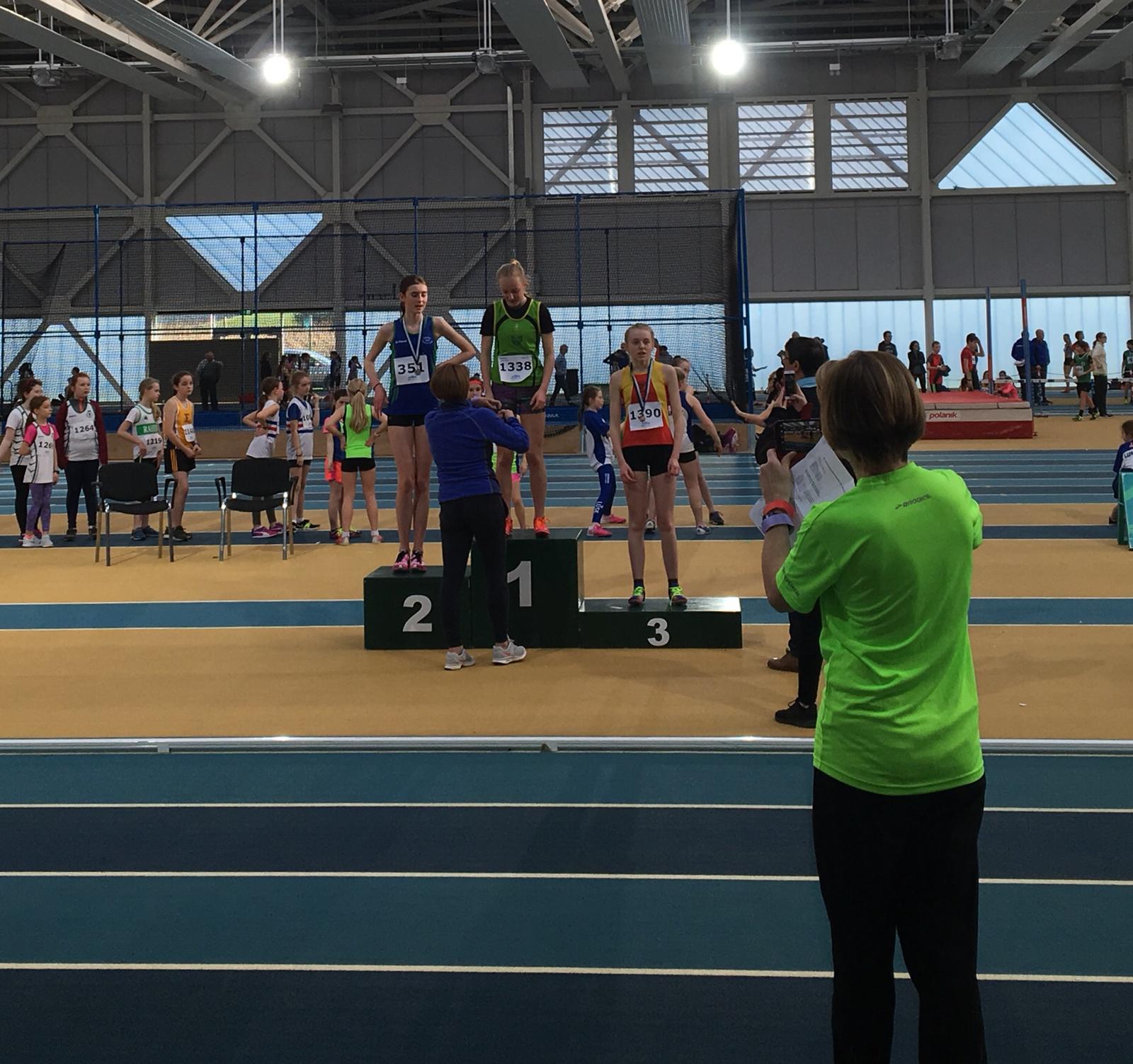 The huge sprints programme followed with Bruce and Pearl making the second round in their 60th sprints, Bianca came 4th in her heat under 12, Martha had a great day celebrating her birthday by winning the Dublin indoor 60m under 11.