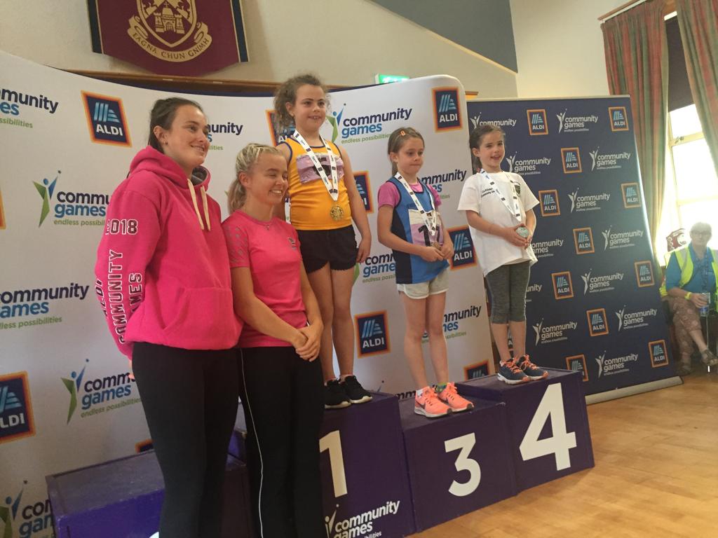 Fabulous news from Limerick! Our three little women have made the finals of their events in the National Community Games!!!. Martha on left in 60m hurdles under 10, Pearl in the middle – under 8 final of 80m and Aimee under 10 100m final. It’s a great achievement to make the finals and best of luck to them all in their finals this afternoon.